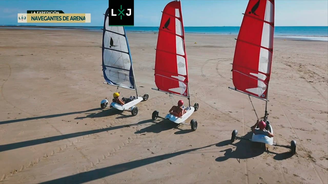 Los talentos decidieron competir por unos banderines en la arena arriba de veleros sobre ruedas.