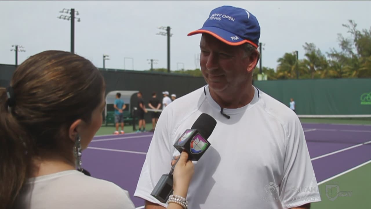 Glen Outlaw casi 200 millas desde Melbourne, Florida para ser parte del equipo de recoge pelotas en el Miami Open.