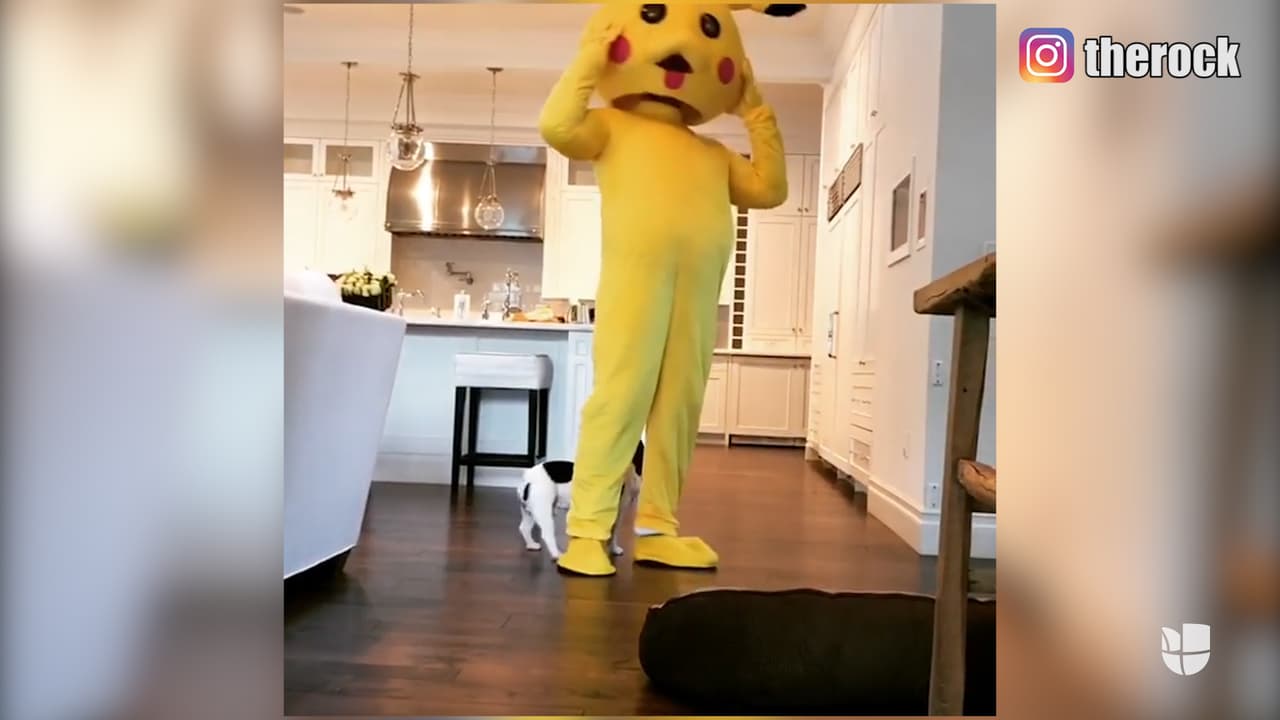La 'Roca' deja a un lado su perfil de rudo luchador para disfrazarse de Pikachu