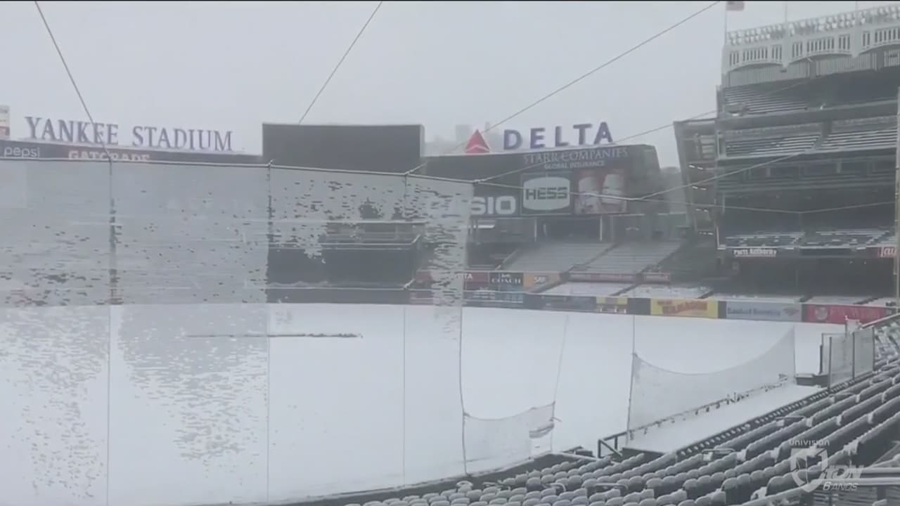 El partido que daba el inicio oficial de la temporada 2018 en la MLB ante los Rays, se ha tenido que posponer gracias al mal tiempo que vive la ciudad de New York. El campo era completamente blanco.