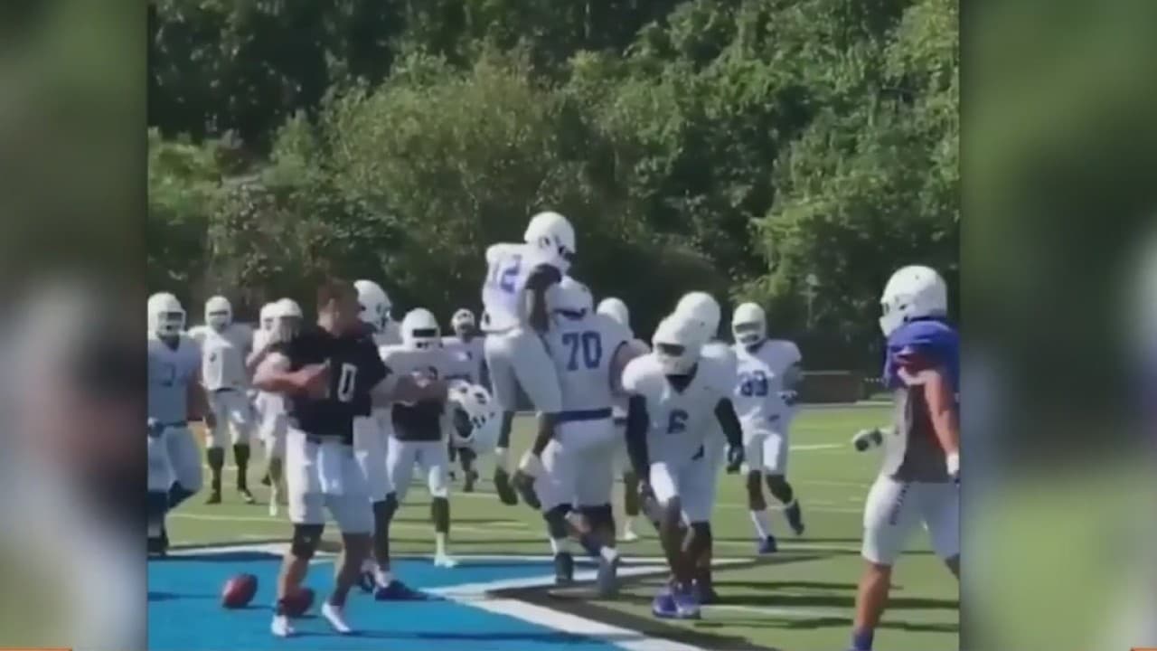 Un jugador universitario de fútbol americano en los Estados Unidos aceptó el reto de sus compañeros de equipo de atrapar cuatro balones sin soltar ninguno mientras atrapaba el otro.