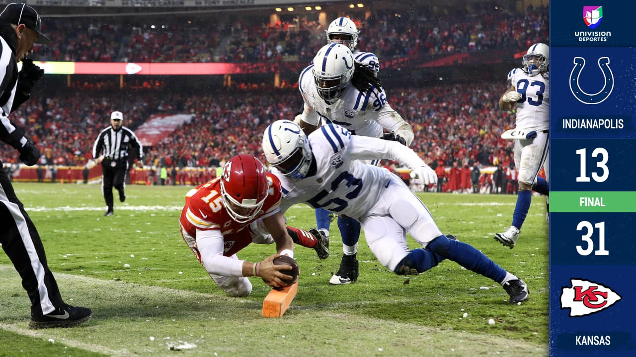 La defensa y el talento de Mahomes dominaron a un Andrew Luck frustrado, en todos los sentidos, por la presión ejercida. Los Chiefs esperan rival en la Final de la Conferencia Americana.