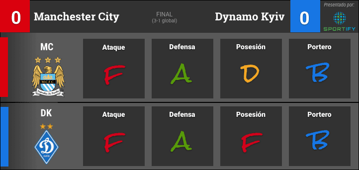 Los porteros se quedaron con muy poco que hacer. Joe Hart del Manchester City hizo dos paradas, y Oleksander Shovkovskiy del Dynamo Kyiv fue desafiado sólo una vez.