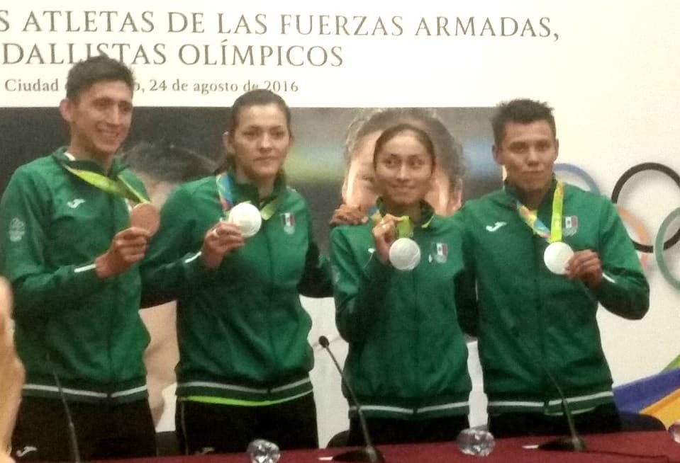 Bajó las notas del mariachi y el son jarocho, cuatro de los cinco medallistas mexicanos en los Juegos Olímpicos de Río 2016 arribaron a territorio mexicano.