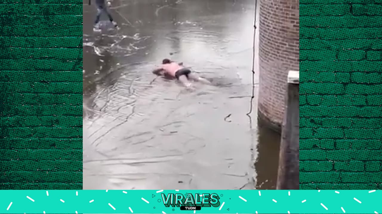 Patinaba en trusa cuando el hielo se rompió en Ámsterdam