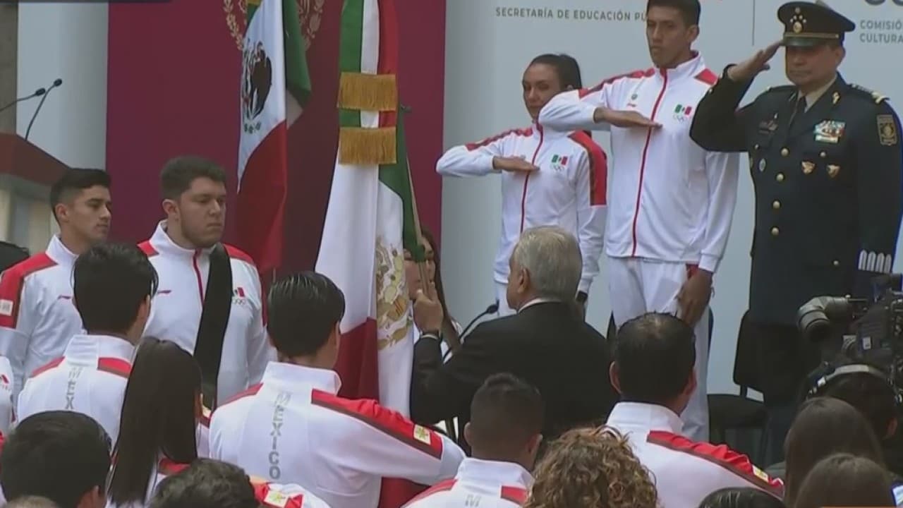 El presidente Andrés Manuel López Obrador fue el encargado de hacer el juramento a la bandera ante los deportistas que representarán al país en Perú.