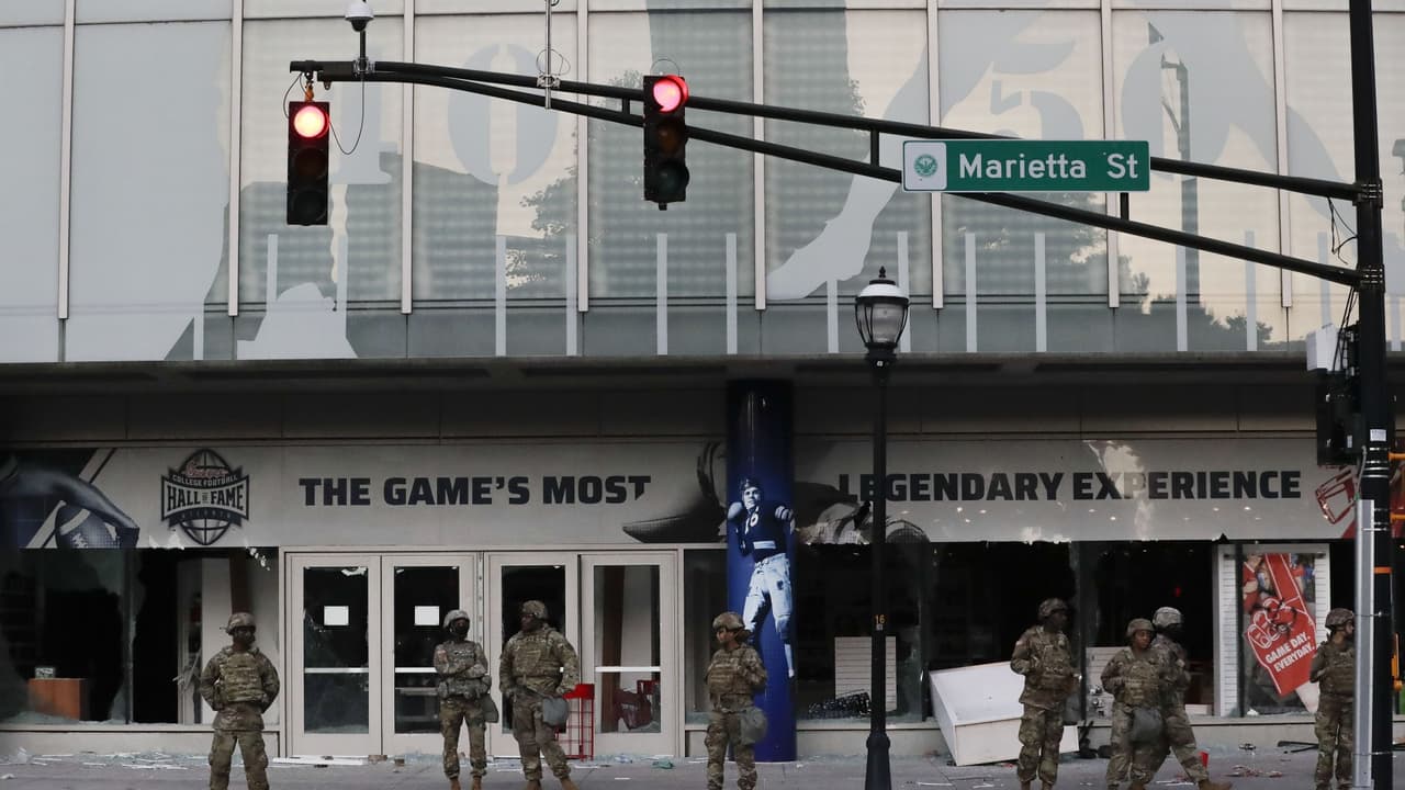 Las protestas en Atlanta, Georgia, por la muerte de George Floyd en Minneapolis causaron destrozos al Salón de la Fama del Futbol Americano Colegial (College Football Hall of Fame).