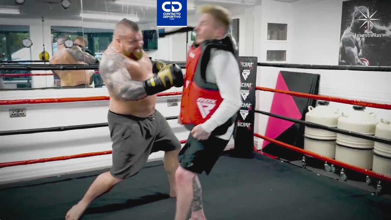 El proclamado varias veces como el hombre más fuerte del mundo entrenó su golpe ante Nile Wilson.