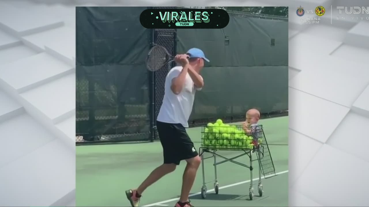 ¡Qué ternura! Bebé ayuda a su padre a convertirse en una leyenda del tenis
