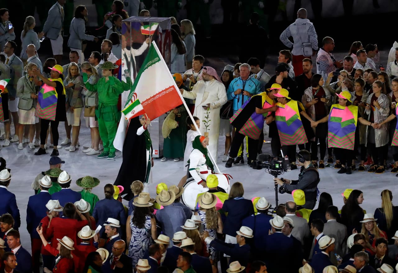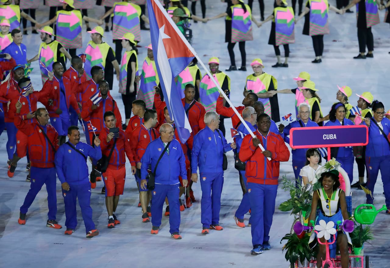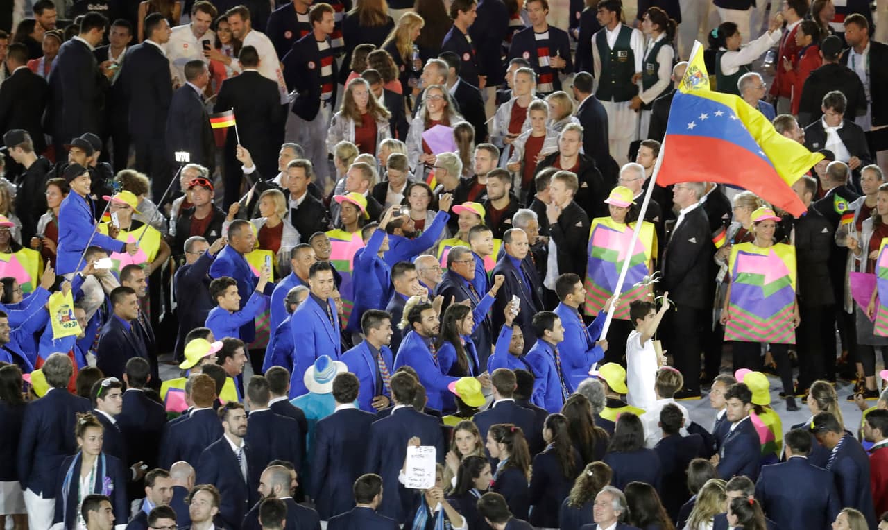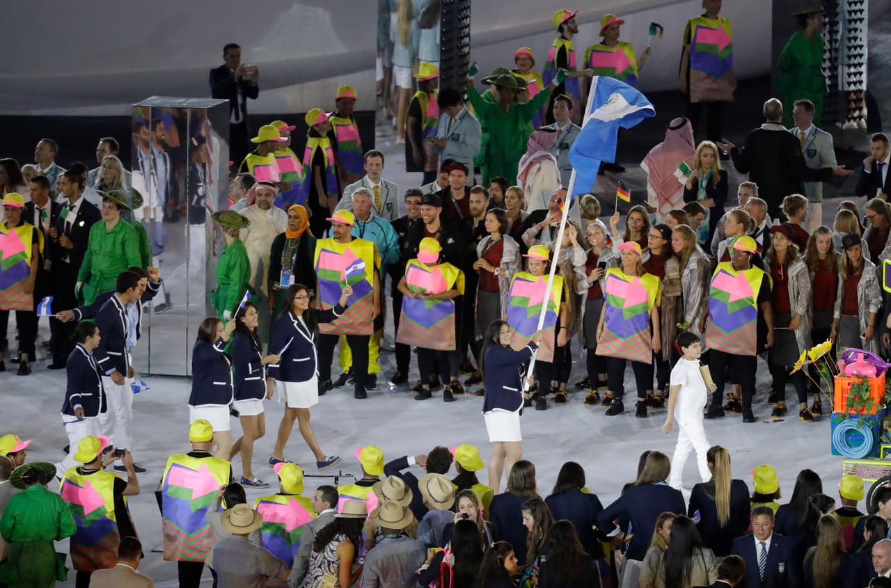 8:00 pm ET.- Los atletas independientes desfilan con la bandera del COI