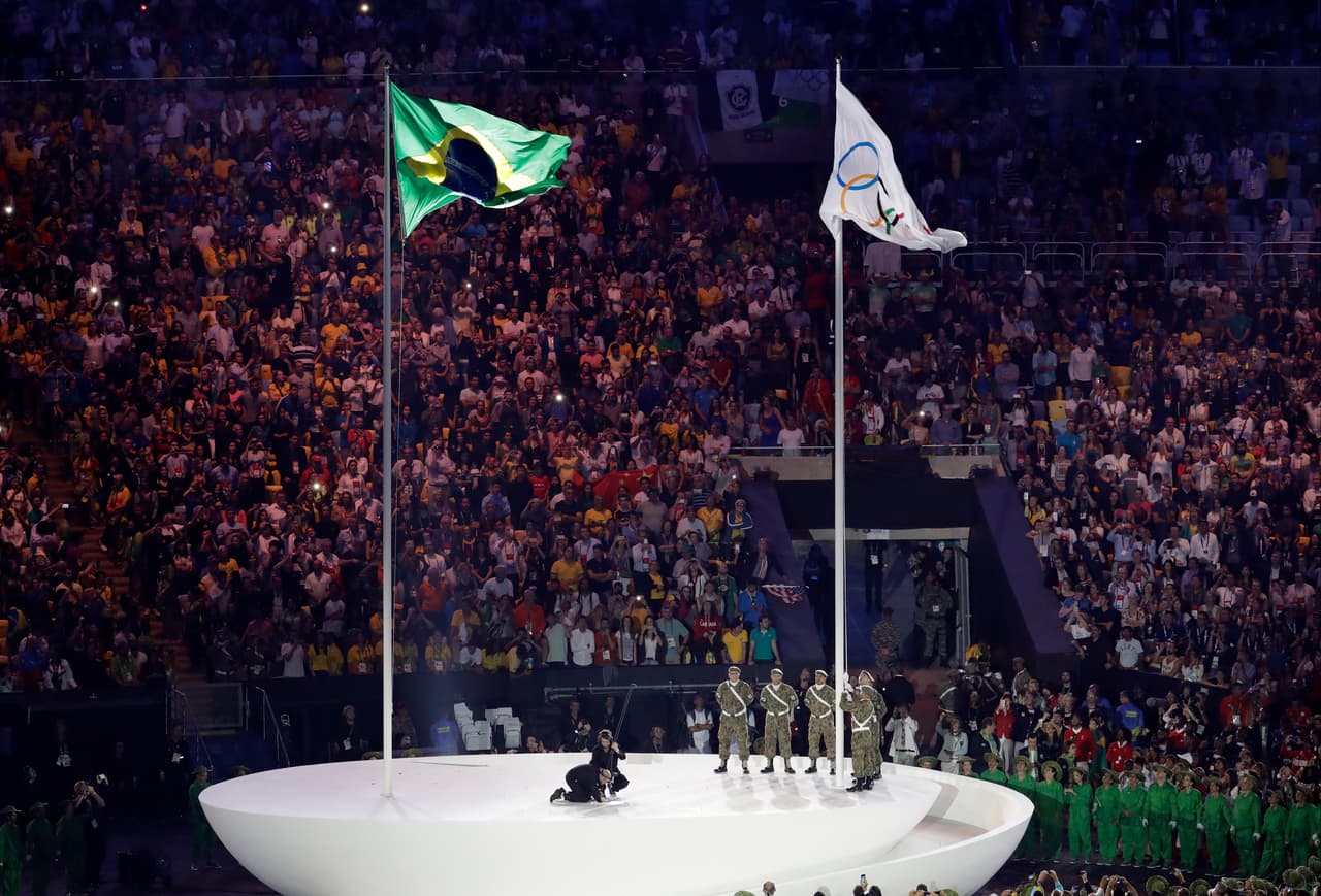 10:34 pm ET.- Se iza la bandera olímpica en Maracaná