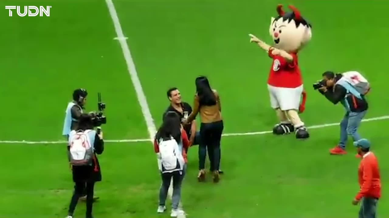 El luchador aprovechó el medio tiempo del Toluca vs. Xolos para comprometerse con su novia.