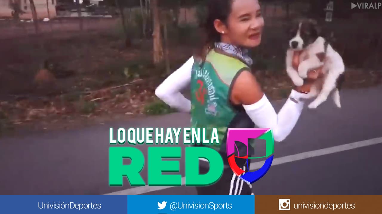Señora encuentra cachorro en pleno maratón y lo carga hasta el final para poder adoptarlo