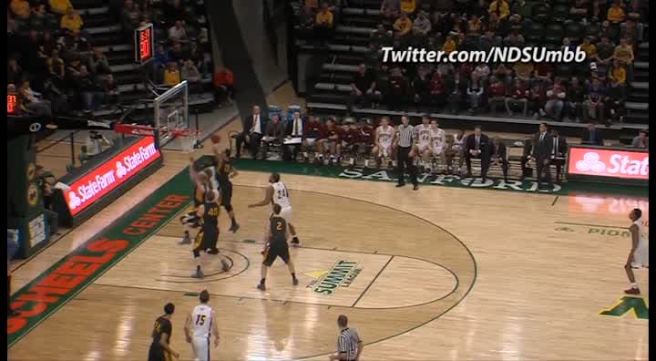 Khy Kabellis de la universidad de North Dakota State anotó una canasta en contra de su equipo, sin mirar y de espaldas.