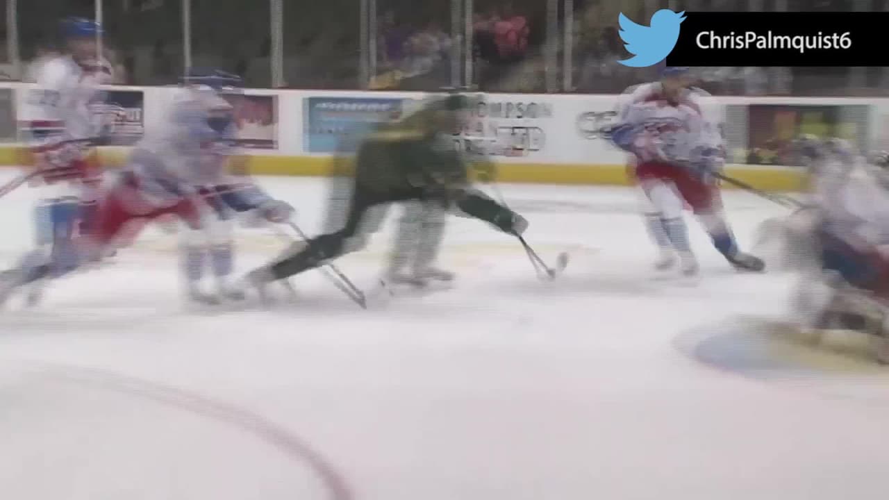 En la liga de hockey sub-20 de EEUU, se dio este curioso momento en que un jugador perdió su 'stick' y demostró su destreza con los pies.