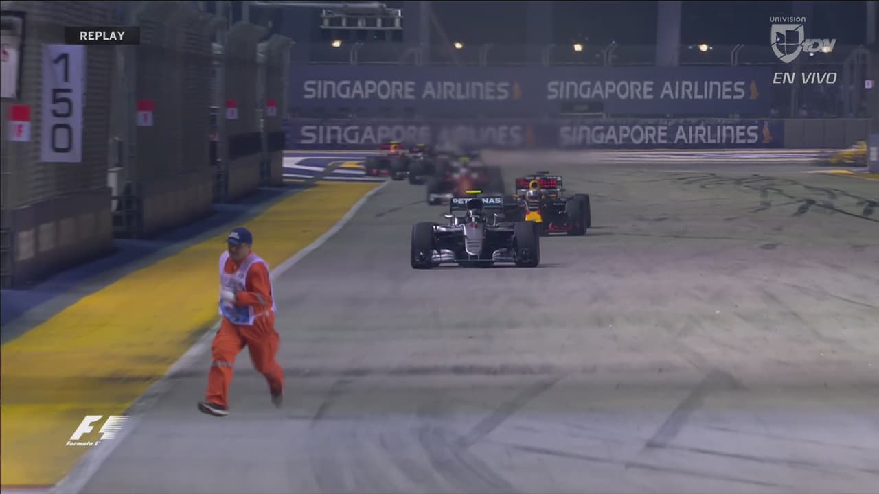 En el Gran Premio de Singapur estuvo cerca de ocurrir un accidente fatal cuando una persona que limpiaba la pista luego de un choque casi es atropellada por los monoplazas.