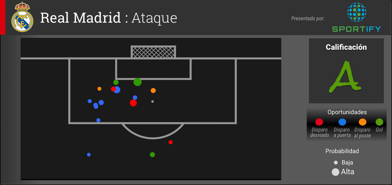 El Real Madrid aprovecho de las oportunidades que creo en el ataque cual enfoco por el lado izquierdo. El equipo ejecutó 29 cambios de juego, la mayor cantidad de la actual temporada de la UCL. El centrar el balón fue la clave del ataque de los blancos.