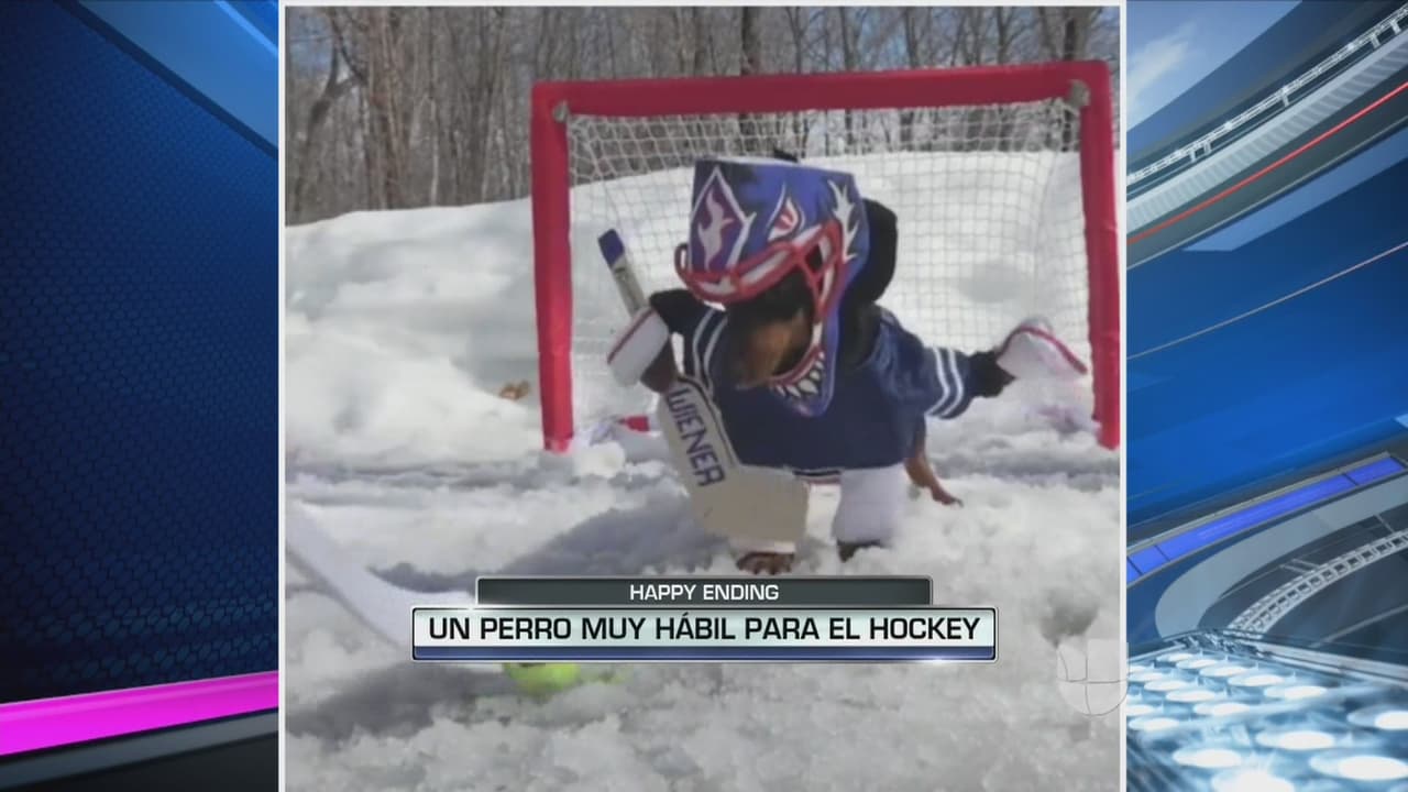 El ‘Happy Ending’ de la semana en Contacto Deportivo nos dejó esta curiosa imagen de un perro deportista, que no le tiene miedo al frio y que demuestra gran talento para el Hockey sobre hielo.