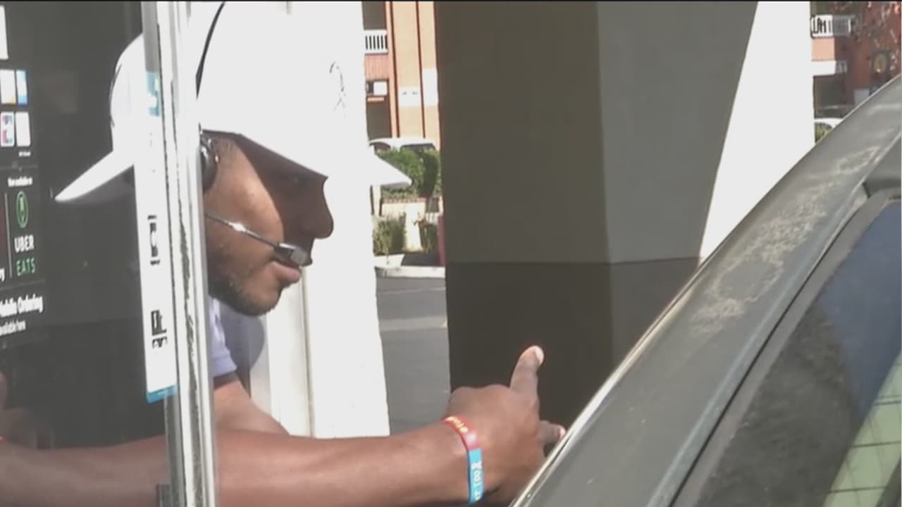 Yasiel Puig sorprendió a sus fanáticos sirviéndoles comida rápida