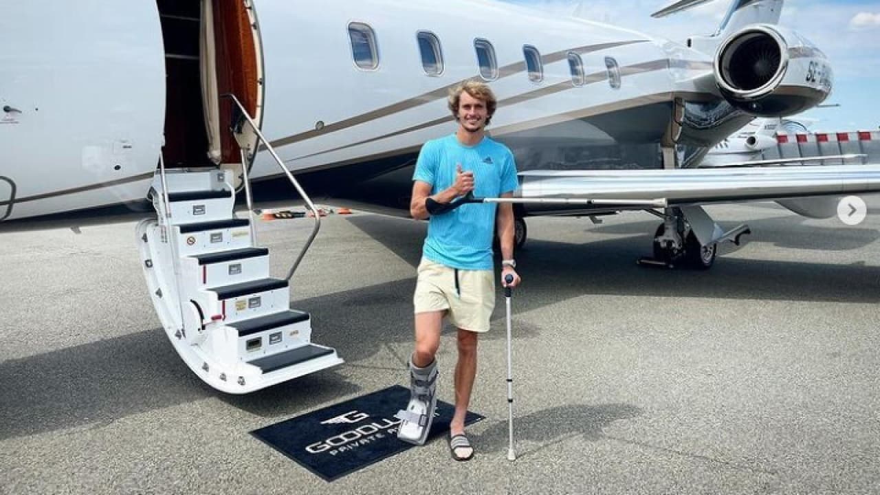 Junto a una foto en la que aparece al lado de un jet privado y con muletas, Zverev agradece las muestras de apoyo recibidas.