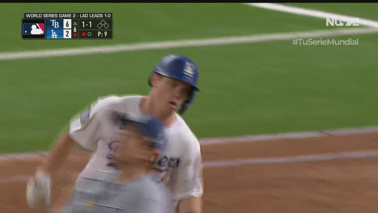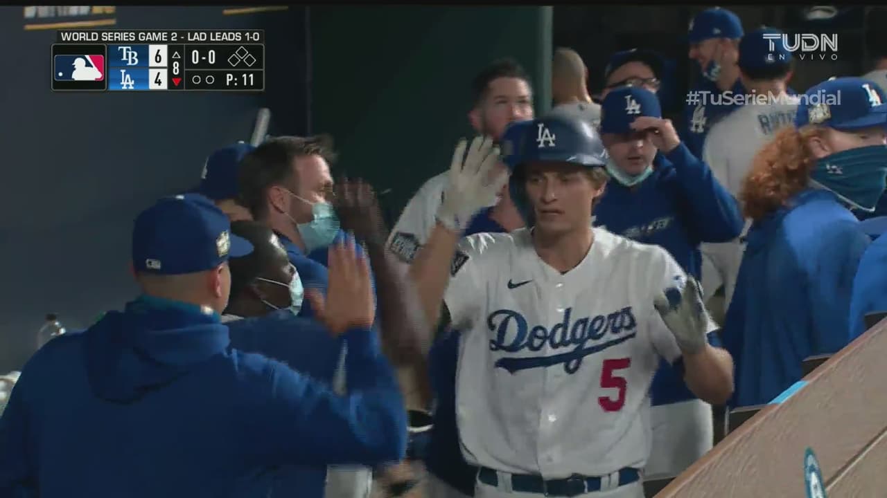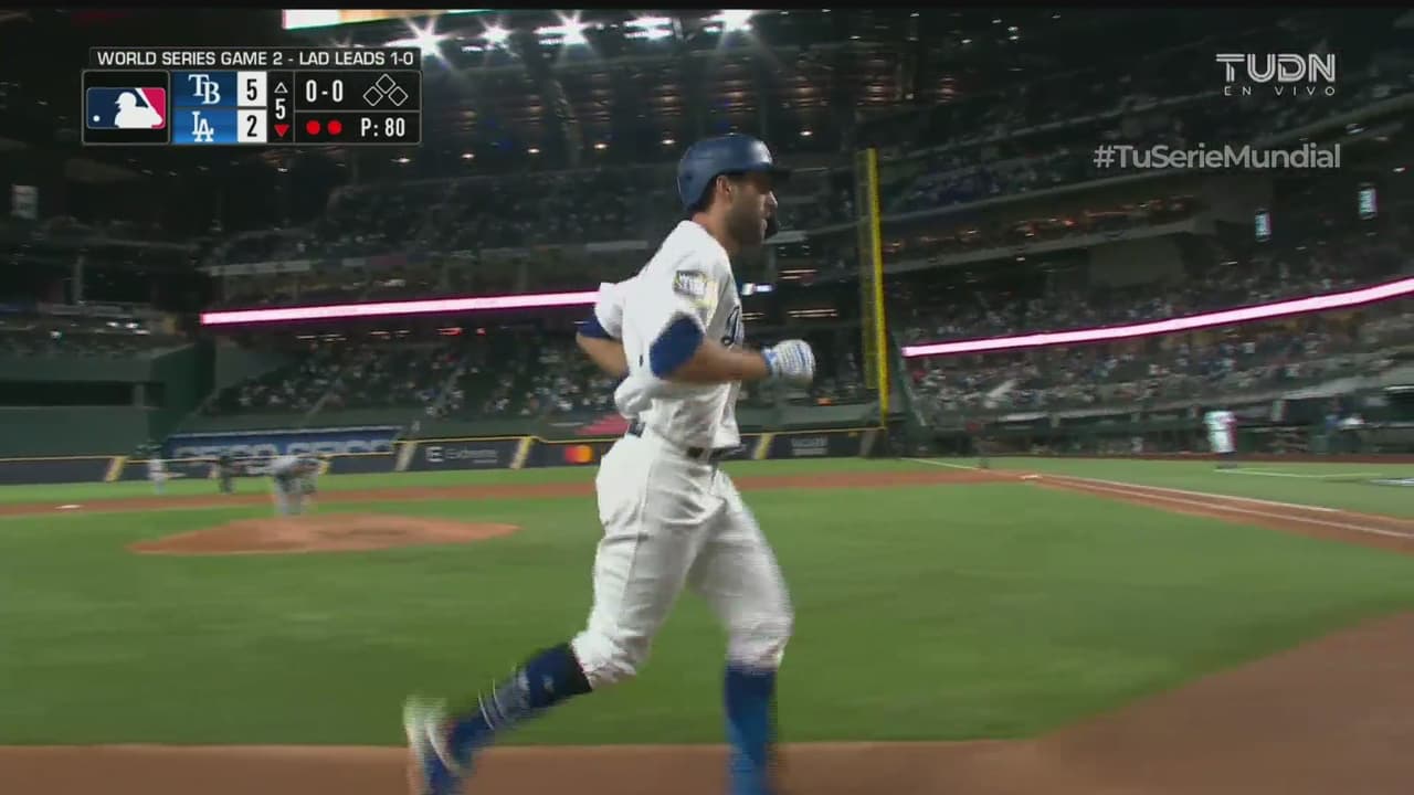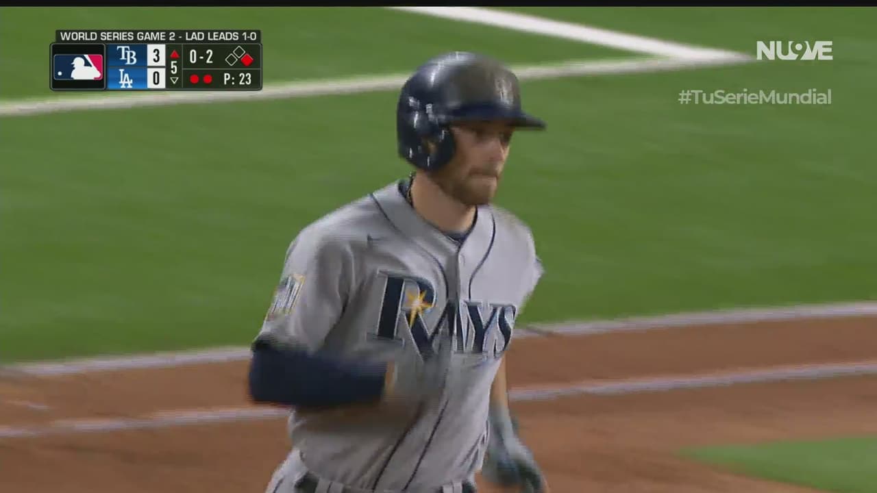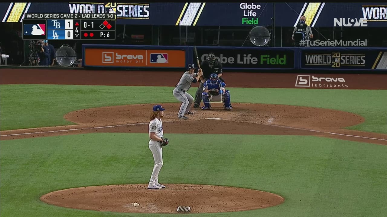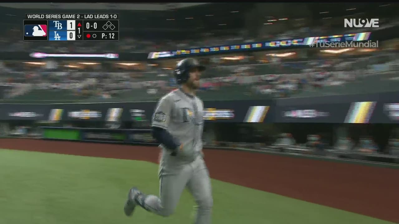 Se prendió el bat de Brandon Lowe que despertó en el segundo juego de la Serie Mundial y le pegó un home run a Tony Gonsolin en la alta de la primera entrada.