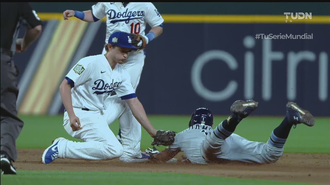 El shortstop de los Dodgers, Corey Seager, sacó de gran forma a Adames cuando se disponía a llegar a la segunda colchoneta.