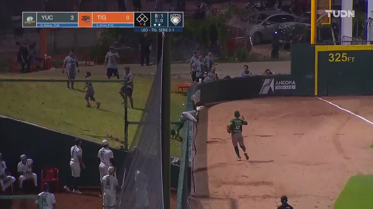 Gran jugada por el jardín izquierdo en el diamante del Beto Ávila. Choque del 'Cafecito' que ilusiona al parque cancunense.
