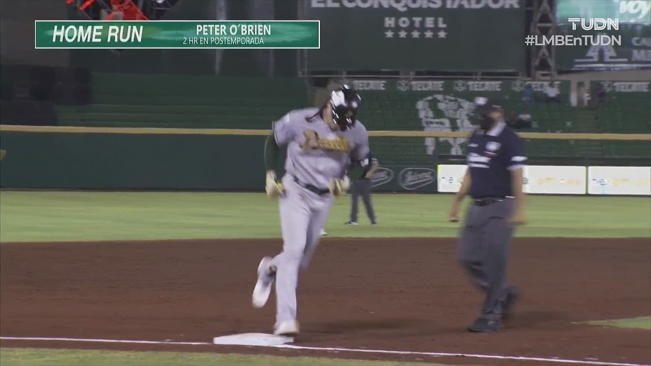 Primer imparable de la novena verde en el juego con un gran batazo por el jardín central de O´brien.