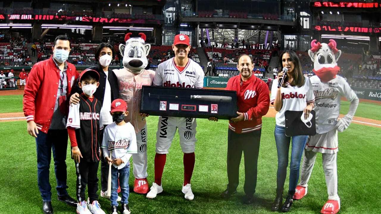 Los Diablos Rojos rinden homenaje a Jorge Cantú en el Estadio Alfredo Harp Helú tras convertirse en el primer mexicano en llegar a los 100 homeruns en la MLB y LMB.