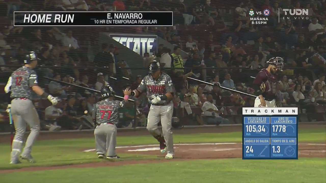 Con gran bombazo, el primera base de los bajacalifornianos llegó a su décimo home run de la temporada regular.
