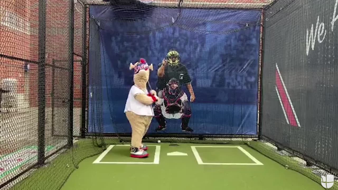 El famoso ‘Blooper’ se atrevió a entrar a una caja de bateo con los ojos vendados, pero seguramente se arrepintió.