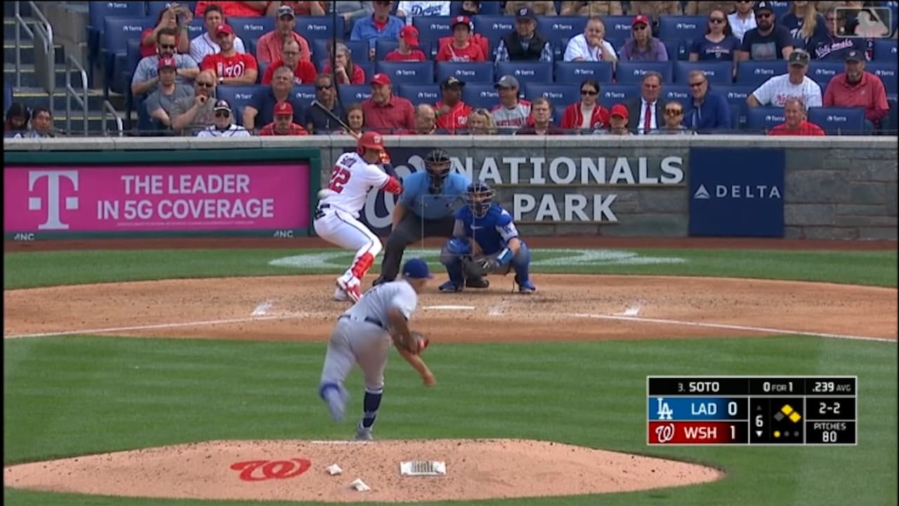 Julio le dio la base por bolas a Víctor Robles en la sexta y tras dos batazos de hit Robles llegó hasta el home para anotar la carrera de la ventaja, misma que se convertiría en la del triunfo algunos innings después.