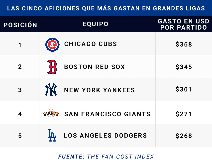 Pero ir a los parques de ambos finalistas es caro. Fenway Park es el segundo parque de la MLB donde el costo para una familia es el más alto (345 dólares) y Los Angeles Dodgers ocupan el quinto sitio (268 dólares), según las cifras de The Fan Cost Index que toma en cuenta cuatro boletos de costo promedio, dos cervezas pequeñas, dos bebidas pequeñas, cuatro hot dogs regulares, estacionamiento, dos programas y una gorra.