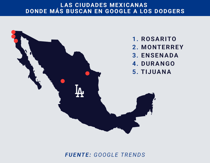 A través de la herramienta Google Trends se detalla a continuación dónde se realizan más búsquedas de los dos equipos que disputarán la Serie Mundial en México.