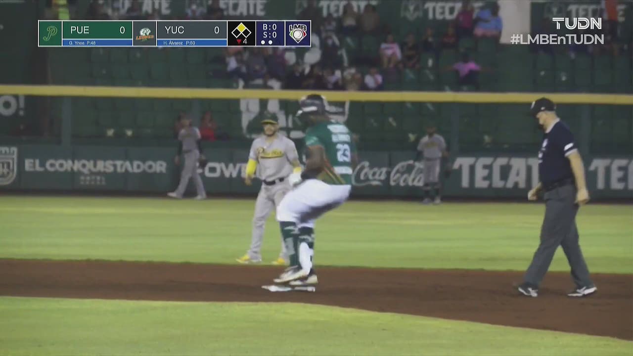 Con hit hasta el fondo del parque, la novena local está a nada de poder generar peligro a los poblanos.