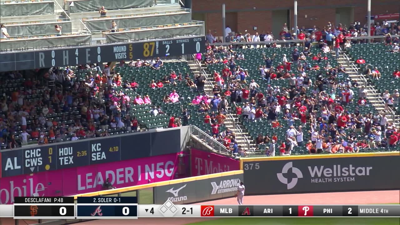 Soler (20) mandó la pelota a la calle en el cuarto episodio sin corredores en los senderos al cazar la serpentina del abridor Anthony DeSclafani.