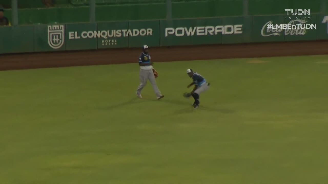 Rosario no llegó a atrapar la esférica. Tito Polo llegó para atraparla luego de irse al fondo del parque.