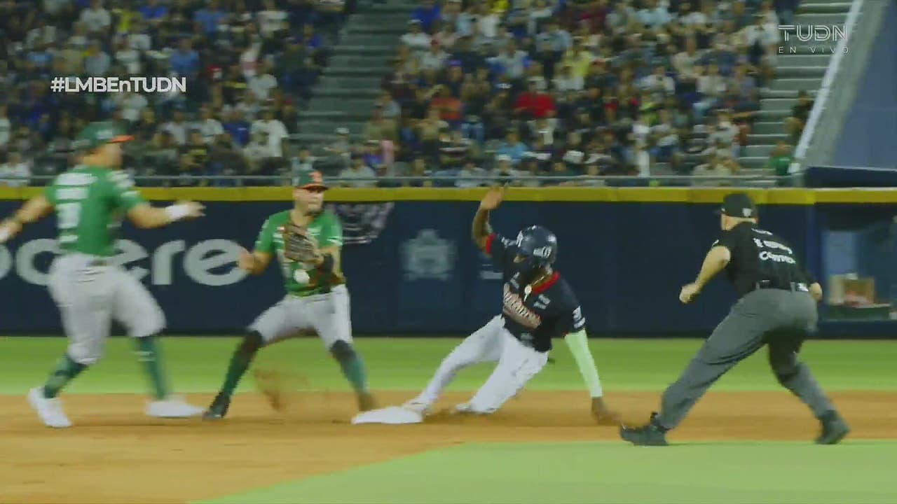 El segunda base de la novena melenuda dejó de observar la esférica y por ello, no la captura bien.