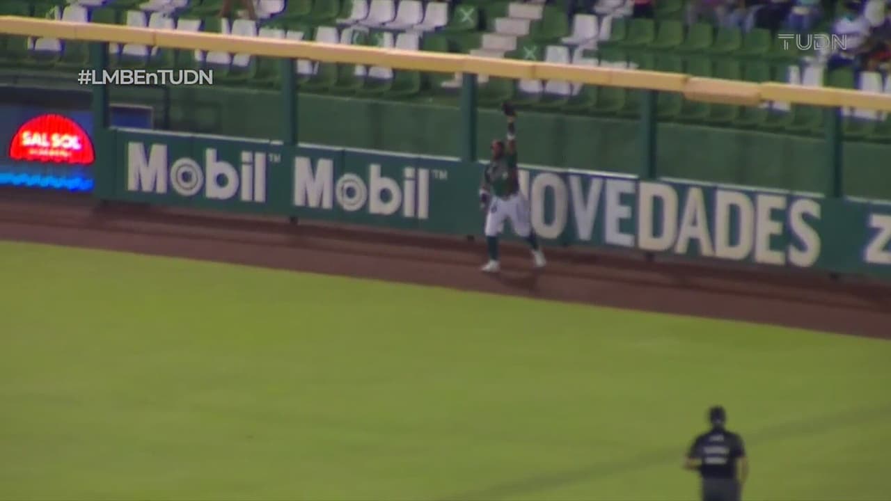 Jesús 'Chuyito' Fabela conectó batazo por jardín derecho pero Yadir Drake atrapó la pelota.