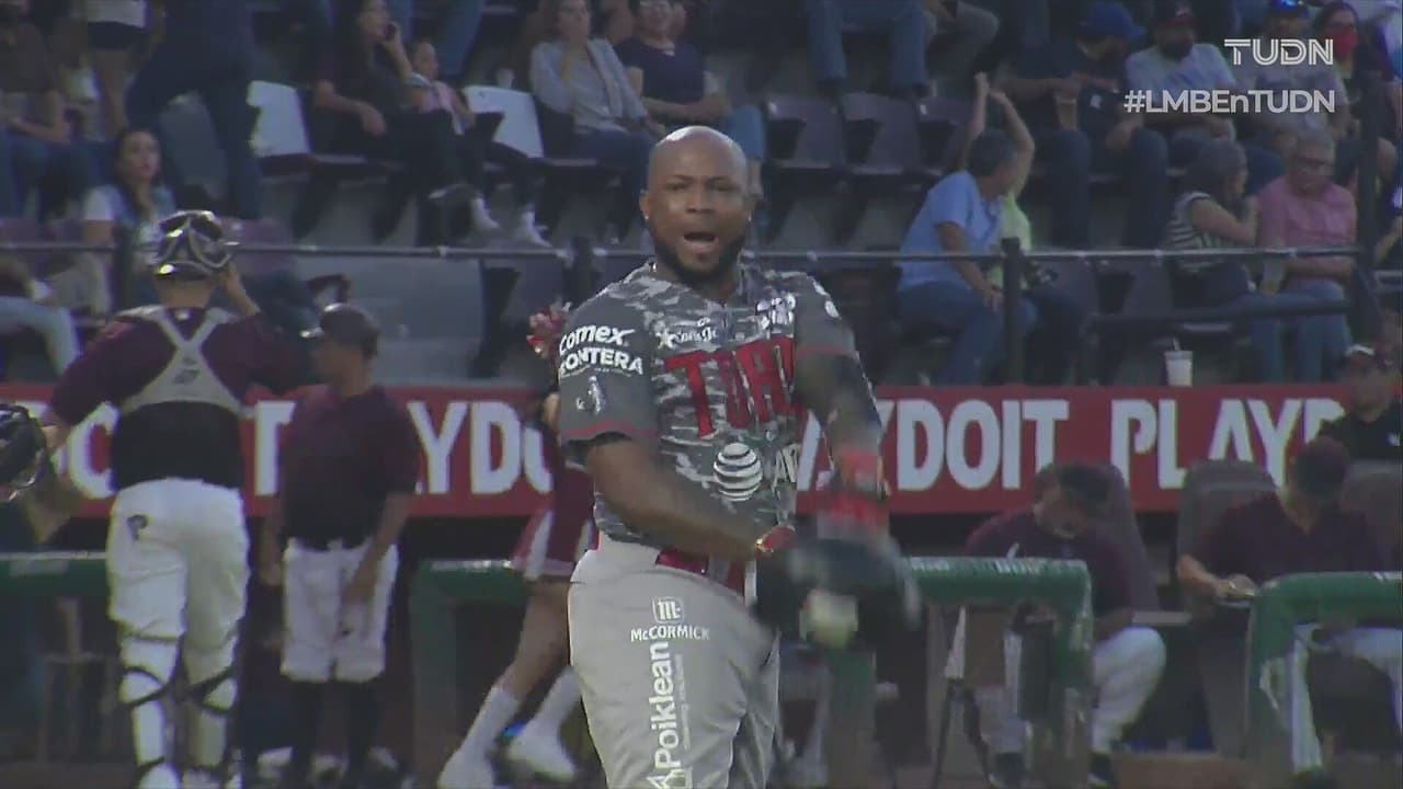 El jardinero de Toros de Tijuana abandona el diamante tras protestar decisión del umpire.