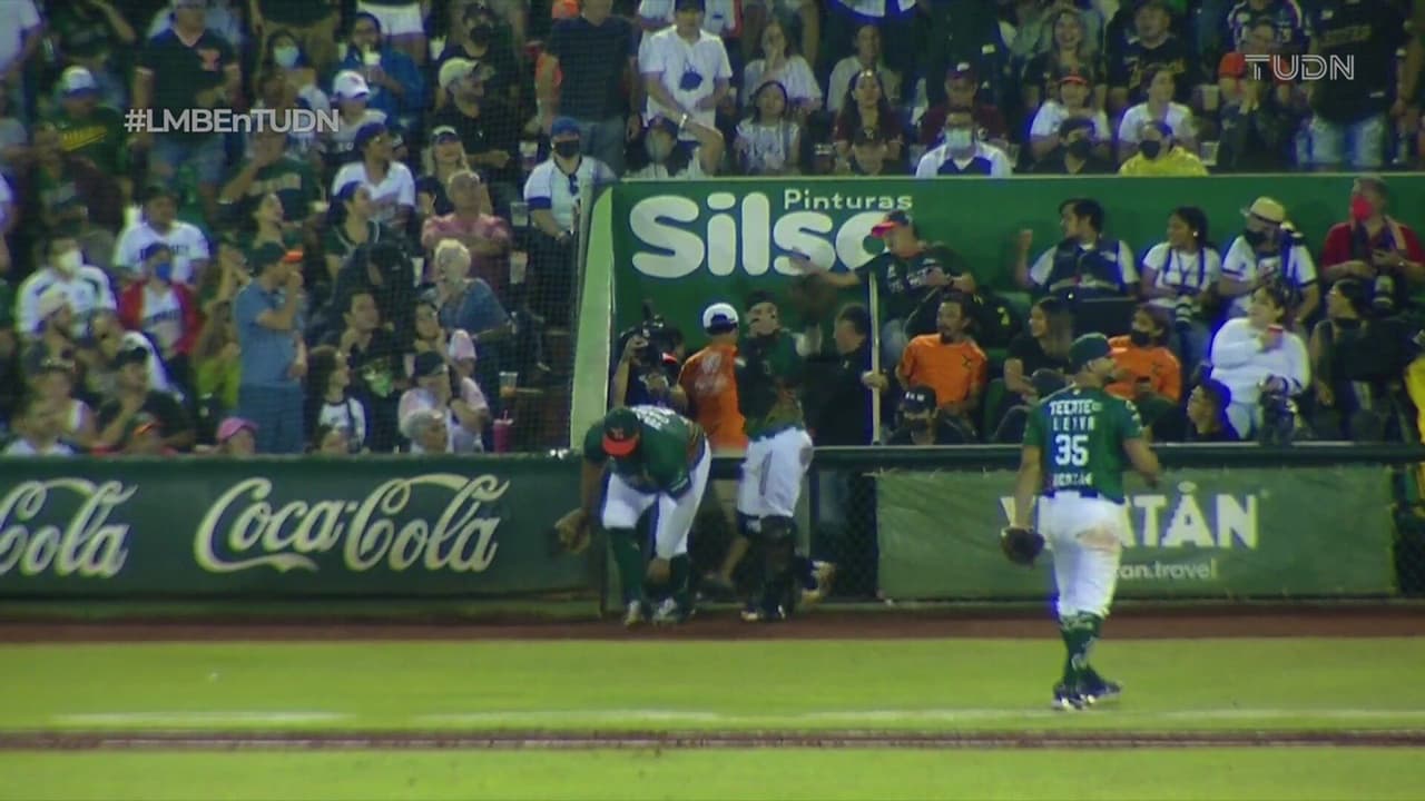 'Art' no pudo detenerse y terminó con la rodilla lastimada al pegarse contra una barda al buscar la atrapada.