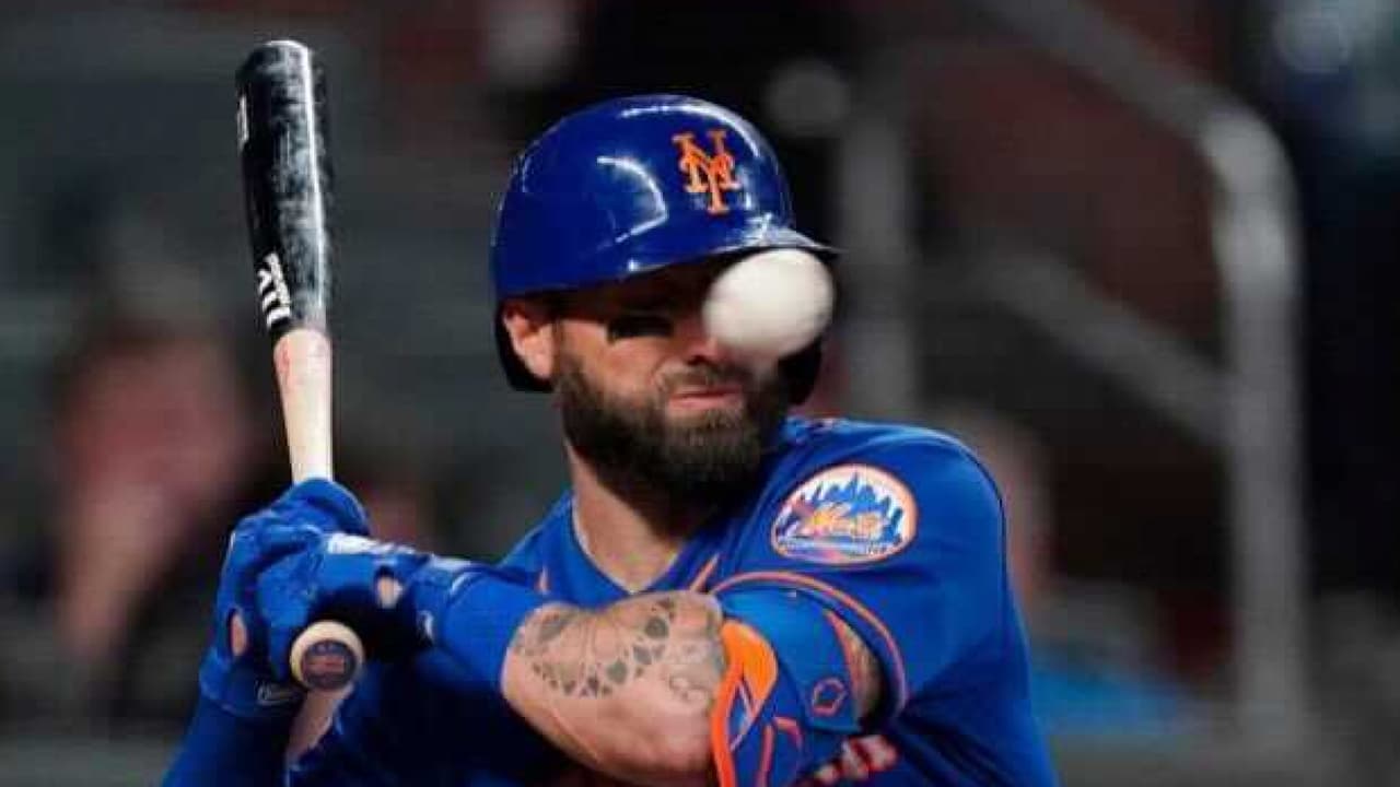 El jardinero de los Mets tuvo que abandonar el encuentro ante los Bravos tras ser golpeado por una recta a 94.5 millas por hora.