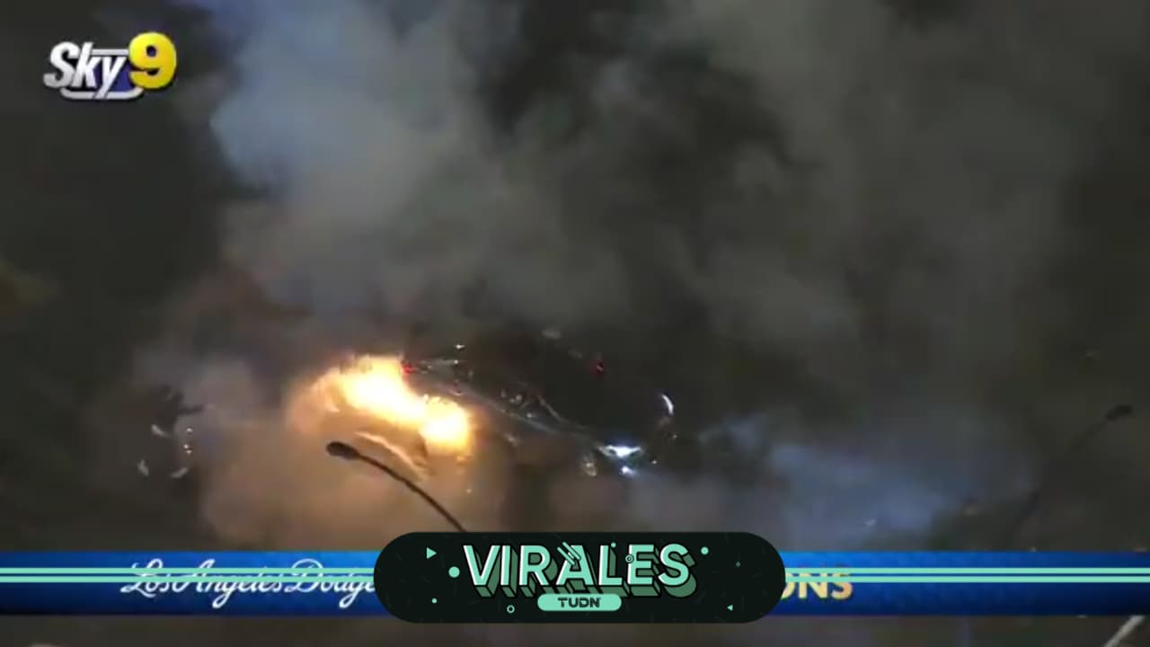 Un fan de los Dodgers incendió su vehículo en la celebración