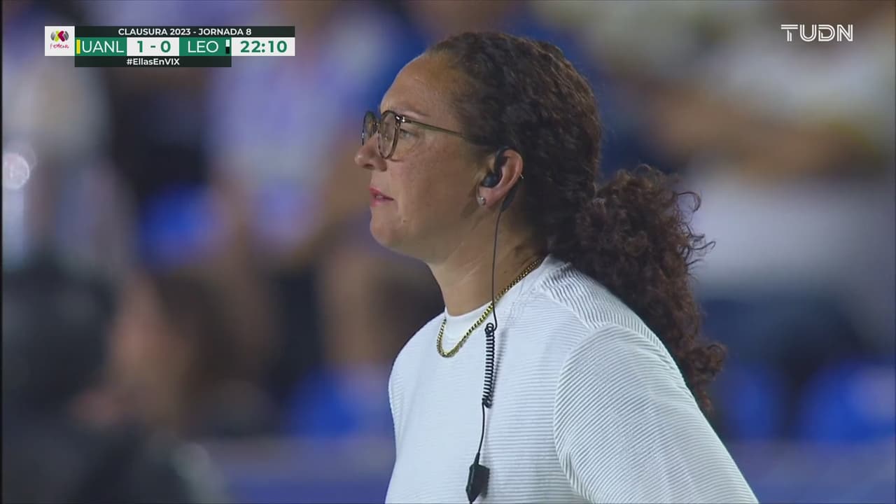 La DT de Tigres recibía comunicación desde la grada, pero no está permitido y se lo tuvo que quitar.