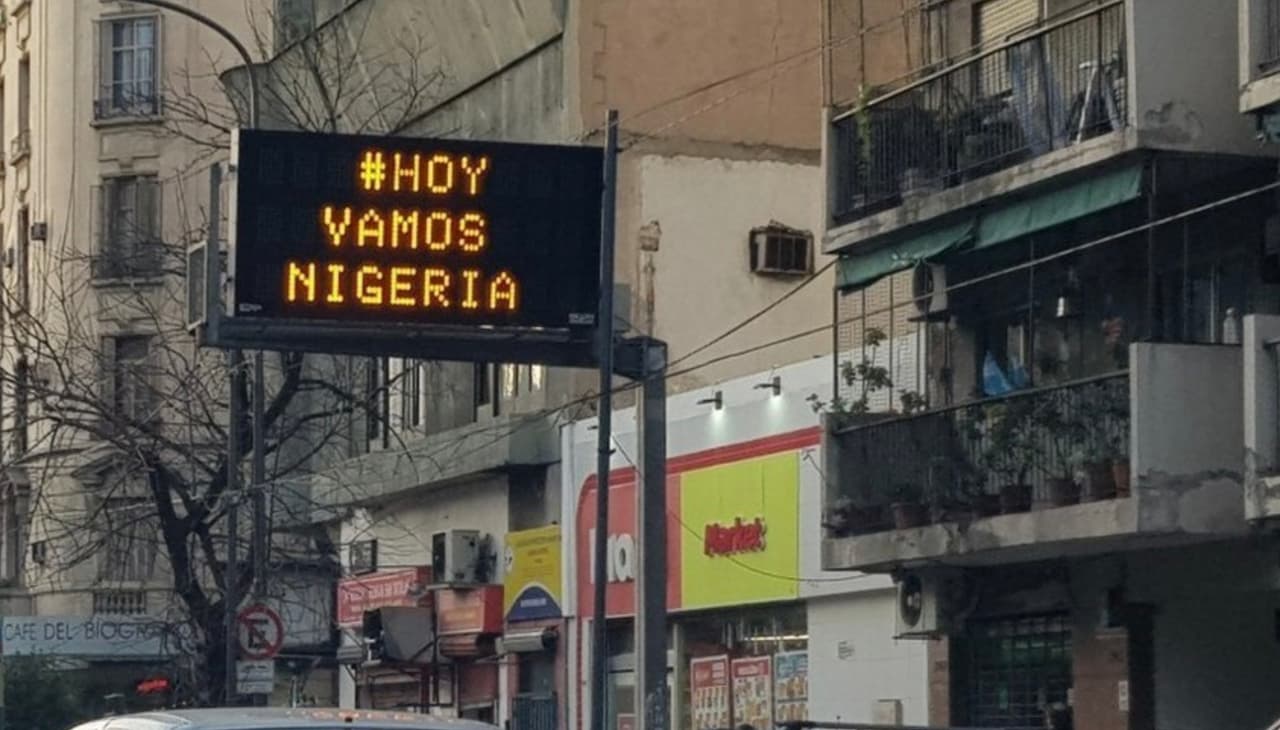 Los carteles de tránsito de las calles de Buenos Aires mostraron su apoyo al conjunto africano ante Islandia, duelo que es vital para la selección argentina.