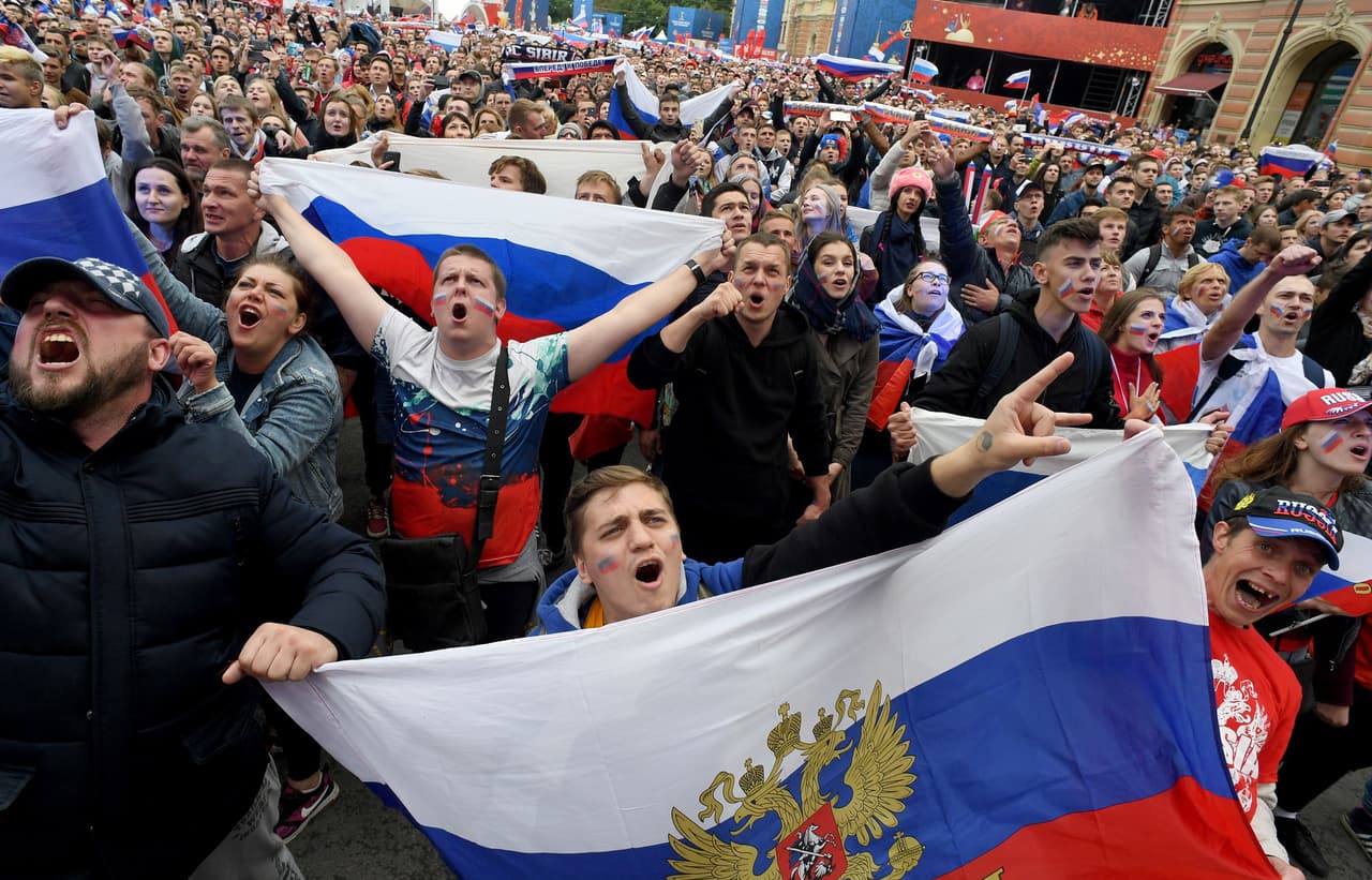 Toda la tensión de los locales se liberó en forma de gritos y brincos tras dar la sorpresa ante España desde los 11 pasos. Así lo celebraron los rusos en las calles.