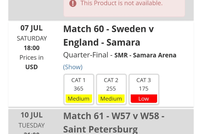 Incluso, la FIFA puso disponibles más boletos para el partido debido a que fanáticos de otros países (como Colombia y México) que esperaban estar en Samara para estas fechas ya no podrán ver a su selección en cuartos de final. En la página oficial de la FIFA se habilitó la boletería para todas las tres categorías desde el jueves en la noche.