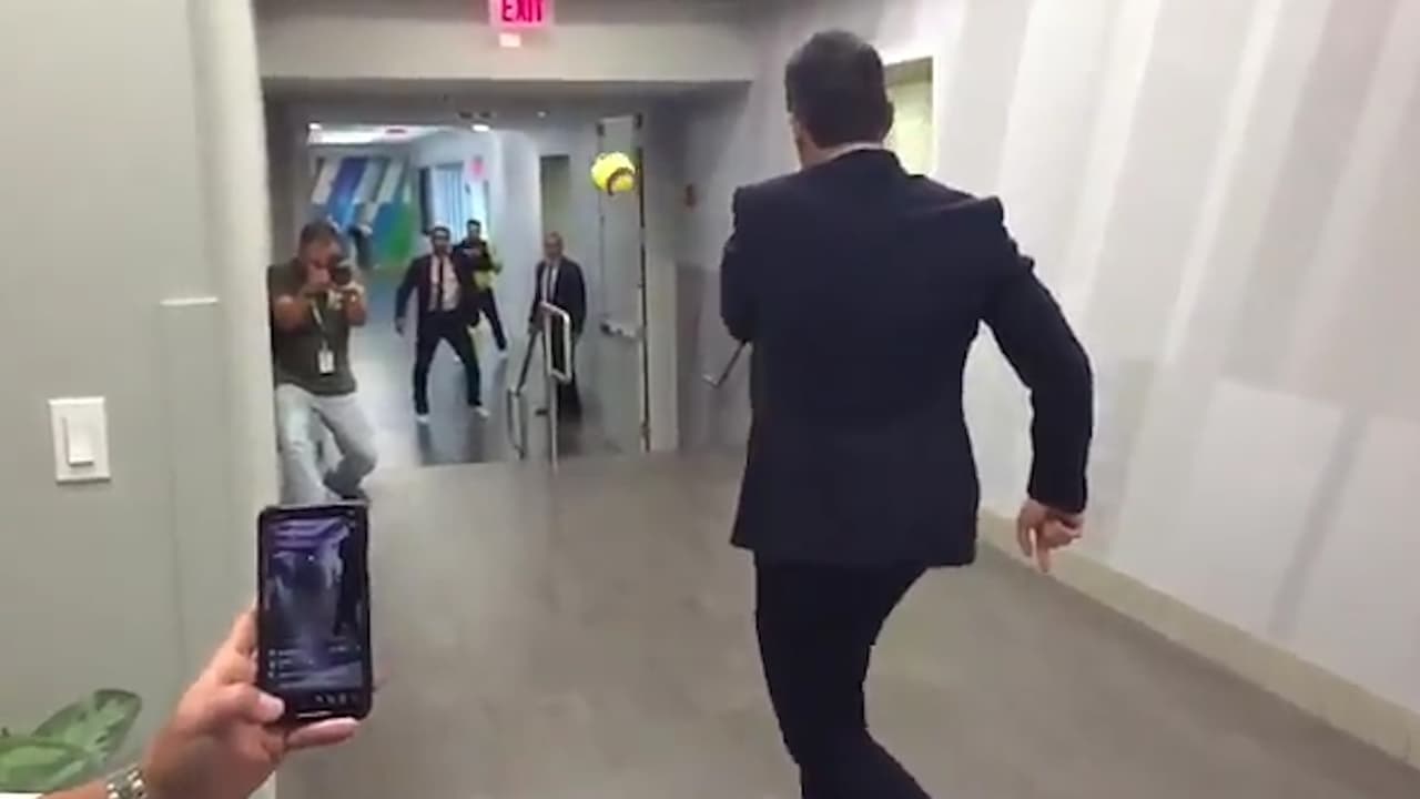 El exfutbolista y director técnico uruguayo demostró que su calidad con la pelota sigue intacta. Esta vez le envió un pase perfecto de media distancia a Aldo de Nigris, que fue a parar en su pecho.
