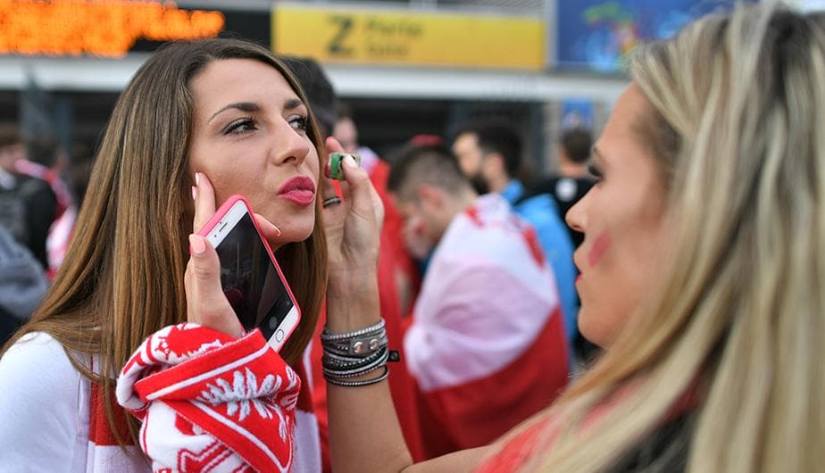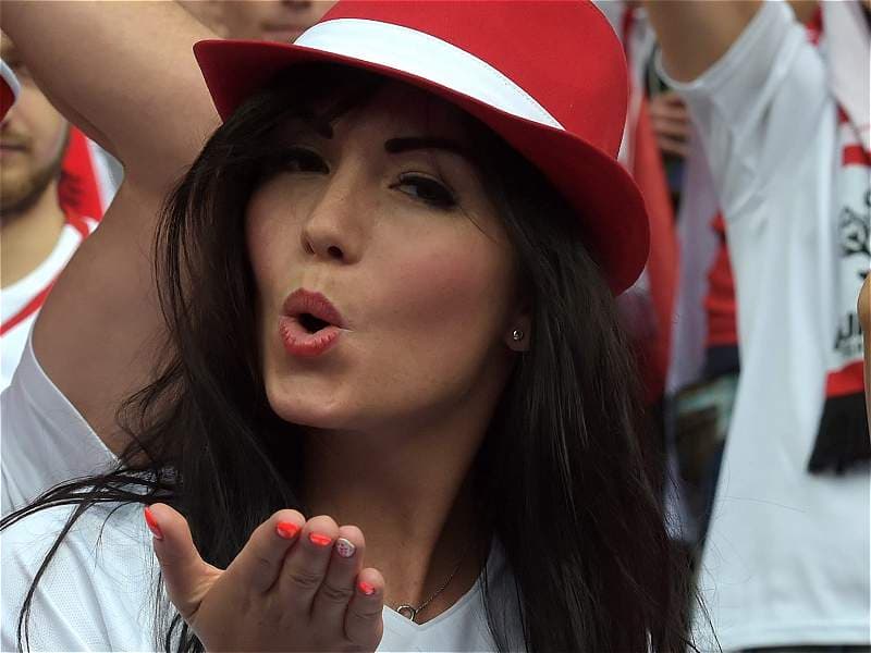 A Poland supporter blows a kiss during the Euro 2016 round of sixteen football match Switzerland vs Poland, on June 25, 2016 at the Geoffroy Guichard stadium in Saint-Etienne. / AFP / TOBIAS SCHWARZ (Photo credit should read TOBIAS SCHWARZ/AFP/Getty Images)