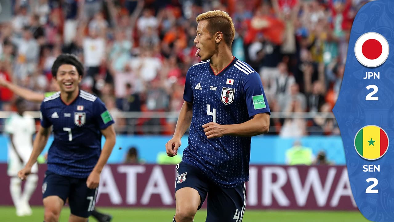 Keisuke Honda ingresó al minuto 72 y muy pronto se notó su influencia positiva. El portero Ndiayé salió de vacaciones en un centro, se pasó y se quedó tirado en el suelo, Inui recentró raso para que el ex delantero del Pachuca tan sólo llegara a empujar. Empate con el que ambas escuadras llegan a cuatro puntos, pero dejan con vida a Polonia y Colombia.